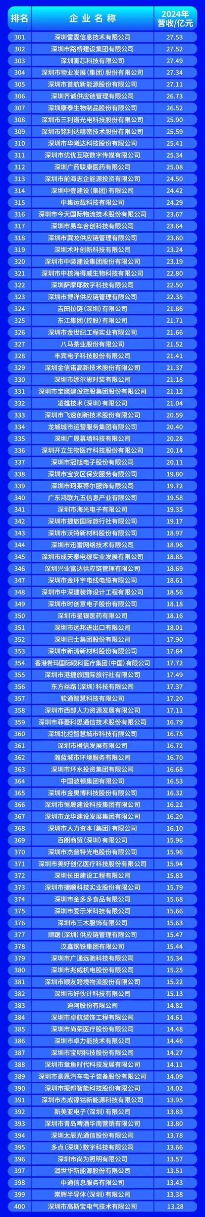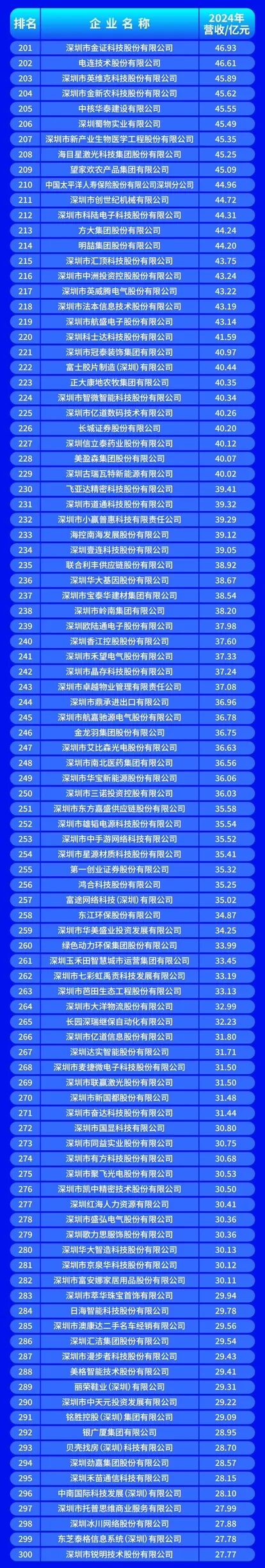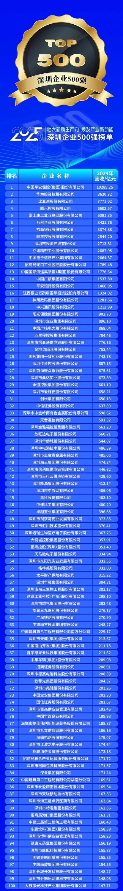 10月28日,深圳市企业联合会、深圳市企业家协会正式发布“2025深圳企业500强榜单”及《2025深圳500强企业发展报告》,中国平安保险(集团)股份有限公司、华为投资控股有限公司、比亚迪股份有限公司位列榜单前三名,延续了头部企业的领先地位。